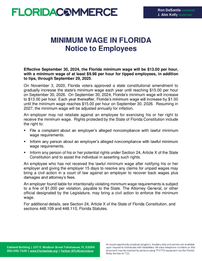 Governing Law Federal Fair Labor Standards Act (FLSA) – Florida lacks a state-run wage claim office, so federal law is primary.