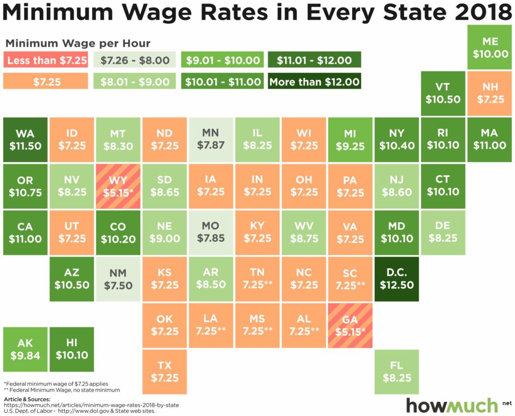 Lowest minimum wage in us by state