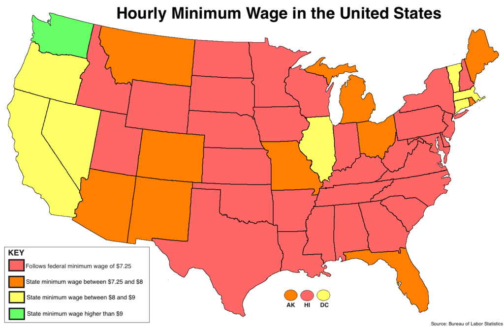 While the federal government sets a baseline, states can enact higher wages to better support workers. Urban areas with higher living costs often have increased minimum wages compared to rural regions, leading to significant variation across state lines.