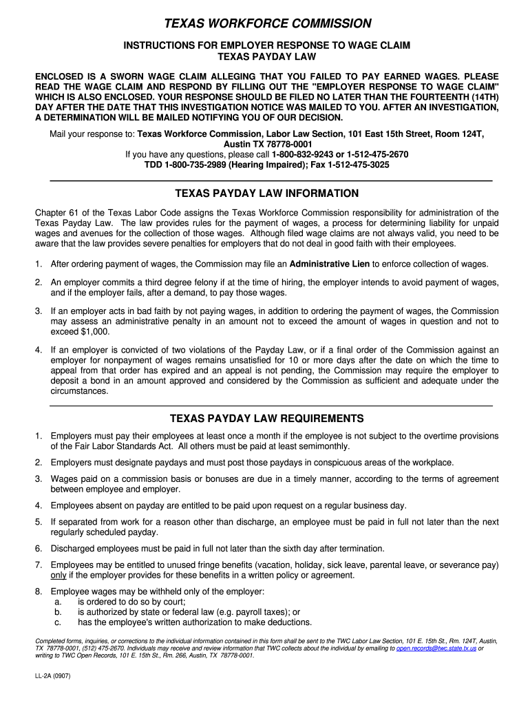 1. Filing an Unpaid Wages Claim with the Texas Workforce Commission
